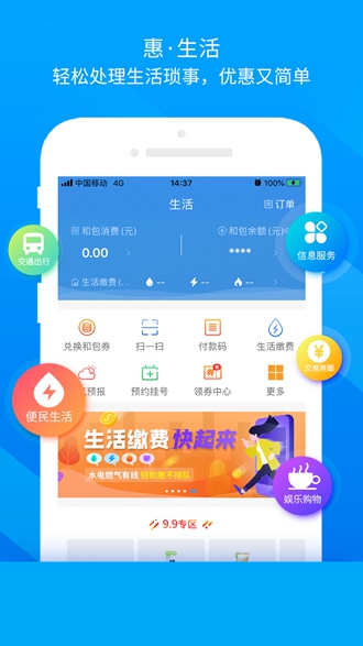 移动惠生活app官方版是一款专为中国移动打造的线上业务办理服务应用,该软件集在线充值、账单查询、套餐余量等多种便捷功能于一身,让广大用户可以快速进行话费流量以及各种福利卡的使用。同时它还能支持积分兑换及优惠活动领取使用,非常方便实用。除此之外,这款软件界面清爽简约,操作简单易上手,能够帮助广大移动用户轻松管理个人帐户与信息;并且还有着丰富的权益特权和特色商品推荐资源让你免费获取更多好礼,有需要的用户不妨来本站下载使用吧!