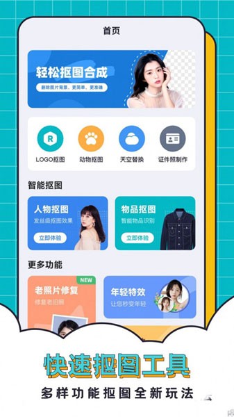 抠图合成助手一款超级好用的支持在手机端进行图片的处理美化,内置超多的素材资源加上自带强大的功能可以对图片中的任何元素进行ps打造专属特效风格,有需要的朋友欢迎下载!