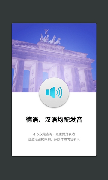 2,真人发音:提供真人跟读对比以及真人发音建议矫正发音,让德语文词辨析更准确。