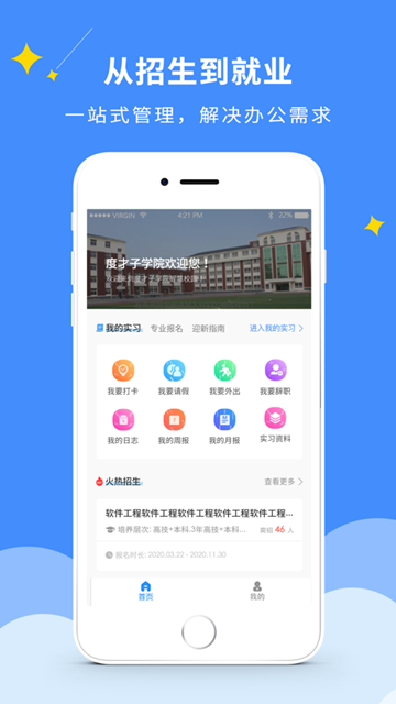 智慧校园是专为技工学校量身定制的招生就业信息查询服务平台,该软件以学生端为中心设计打造而成,提供了一站式的服务功能。其中涵盖了教职工招聘、求职者简历管理、在线聊天以及个人成长档案等多个方面内容,
