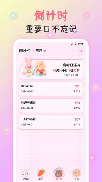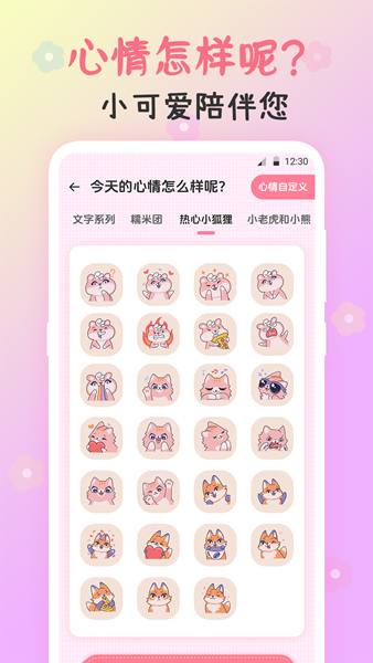 •记录心情时钟,时刻记录自己的感受、心情变化,并且可以在桌面插入图片或者文字表达心情,通过文字的方式展示自己的心事。【工作】