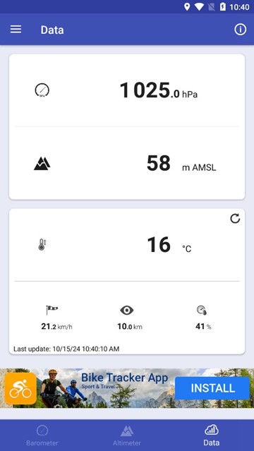 Bartreme气压海拔表计是专为喜欢户外运动的朋友打造的一款气力测试应用,用户可以通过此款软件随时了解自己周边的气量,同时还能根据用户的实际情况定制个性化建议和运动计划。感兴趣的朋友快来西下载体验吧!