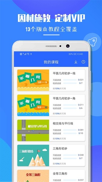 八大主要课程为初一阶段学生提供数学教学视频、课件及题库。