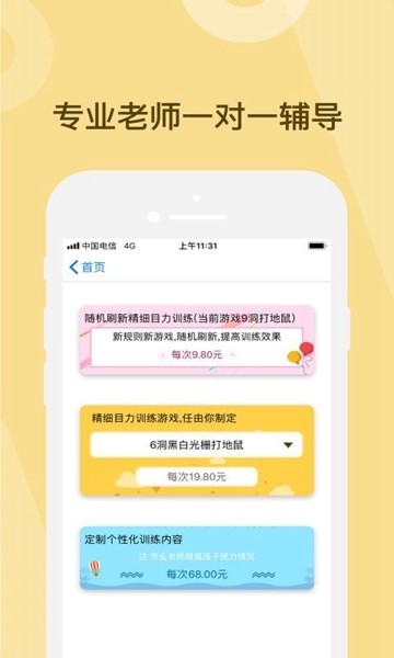 针对每个人的不同视力状况设计不同的训练方案;