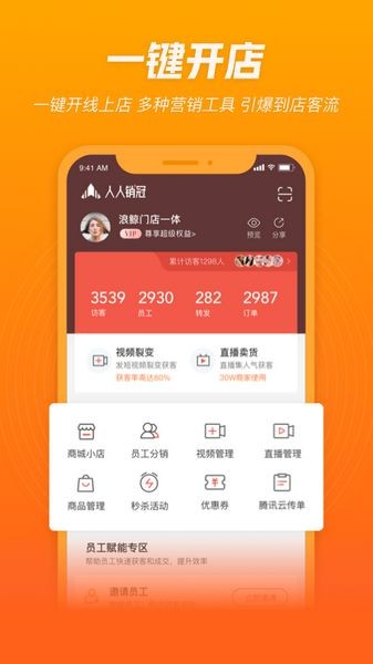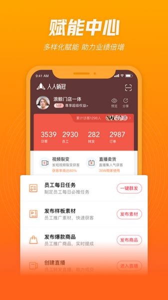 【人人销冠】以直播+社交模式,将线下实体店与互联网技术相结合,致力于为广大商家及个人提供一整套解决方案的同时提高门店业绩;