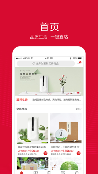 融托优选是一个综合性电商服务平台,涵盖了衣食住行等各个方面内容供你随意浏览学习了解更多的知识以及相关资讯、生活消费指南等等应有尽有,能够让你随时在手机上面轻松享受到便捷优质的生活方式体验,给你带来更加舒适高效的服务模式感受,并且所有的资源都经过严格的质量把关后才推出出售,为你提供优质的产品和服务保障,超多的优质好物都可以来这里找到对应的应用程序和产品;感兴趣的小伙伴赶快来下载融托优选试试吧。