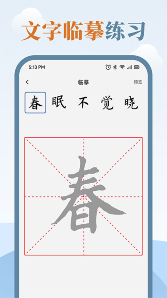 练字临帖大师是为喜欢写一手好汉字的小伙伴提供的一款手机软件,用户在练字临帖大师app上有非常多的书法学习内容可以使用,而且还能在线练习各种书法方面的知识!