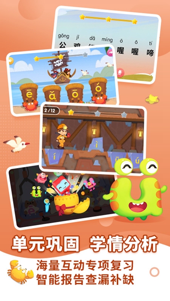 以孩子喜欢的拼音学习内容为主,提供科学科学的学习策略,培养学习兴趣;