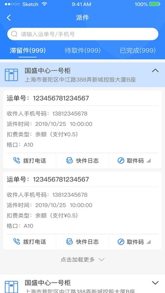 2)云储存中心的快递入库过程包含:快递入库、签收登记、异常名单录入、货号识别、运费核对、短信验证码输入、扫描二维码上传单号获取货物跟踪回执数据更新状态展示,并且能根据不同终端提供的出库时效统计图表呈现包裹库存量、滞留件率、待入库数、滞纳金数、滞销件数、已入库数、已出厂数、空车率、超出库数量等多种出入库类型,