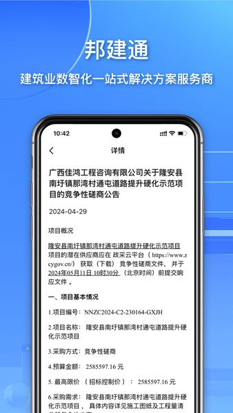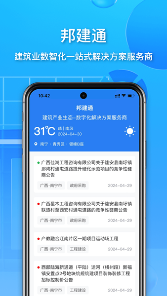 邦建通是专门为建筑行业打造的线上交流平台,这里有海量专业的建筑行业人才在线发布信息。用户还可以查看附近的建筑行业的动态和公司情况等详情!