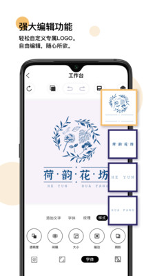 在线编辑时可实时预览设计效果,并保存为高质量的logo设计包,便于随时调取修改。