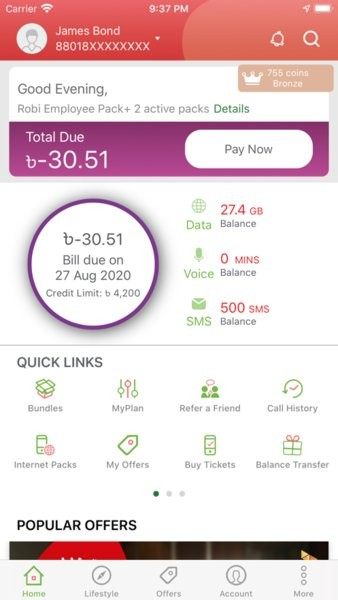 Robi是一款专为国外的用户准备的手机营业厅软件 myapk国际用户准备的手机营业厅软件是一款专门为海外用户们打造的手机应用,软件可以帮助我们轻松查询到海外最新推出的手机服务套餐和流量等信息内容。该软件提供了多种语言选择、优惠折扣以及个性化推荐功能,让您能够享受更多实惠的价格和服务体验。MyAPK是专为海外用户设计的智能移动应用程序。您可以通过它随时随地了解自己的账户余额情况,从而更好地管理自己的账户状态。
