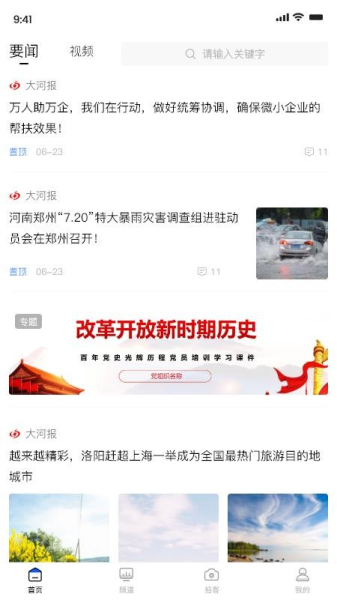 豫视频非常实用的新闻类视频播放软件,一款专为河南省地区的用户们提供最新的新闻资讯阅读的应用服务app,海量最新热门事件实时更新推送给你观看了解,各种各样的短视频应有尽有让你可以轻松看自己感兴趣的视频内容!欢迎下载!