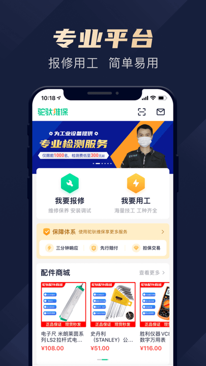 驼IMI维保是专为家居家电维修保养打造的手机软件,使用其能够快捷进行电器清洗操作。支持在线查看设备的状态信息状态以及故障情况等内容;需要的用户不要错过哟!