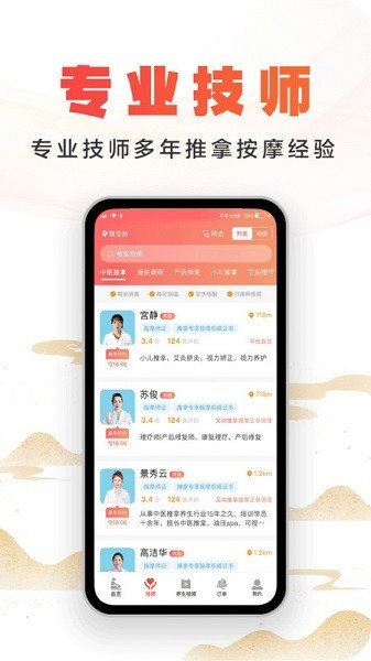 2、能够随时查询附近的技师资源以及价格走势情况等等内容详情数据统计分析十分详细方便简单管理个人资料健康档案更轻松了解更多养生资讯及时掌握身体状态变动变化。