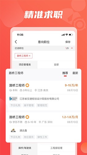 【人才搜索】支持全国范围内职位搜索与智能推荐;