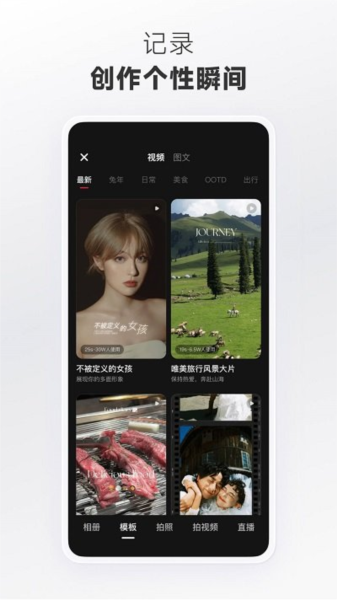 随心所欲拍摄小视频,用图片或视频记录下生活的每个角落。用影像记录最真挚的想法和感受~~创作并分享生活中的美眉/欧阳娜姆·阿姨/猫腻.*...