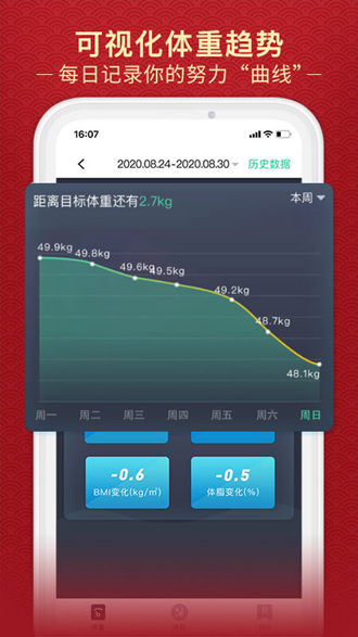-可按体重、目标体重趋势图计算BMI指数;