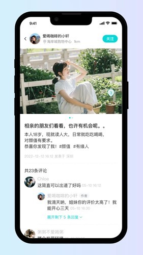 【动态广场】:分享生活点滴,结识更多同城有趣的灵魂伴侣。