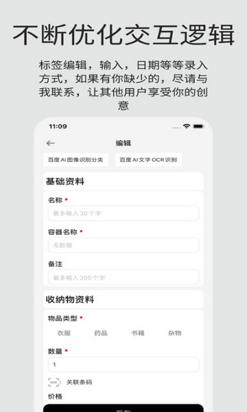 “收聚”是一种生活方式的物品管理工具。通过“收拾”,用户可以记录物品的来源、收支情况、物品的用途以及收纳清单等等信息;并提供收纳提醒服务供用户及时了解收纳事项详情。除此之外“收送”,还可以设置收寄件人的信息及收取条件,以便于后期查找使用。