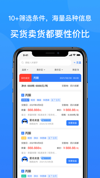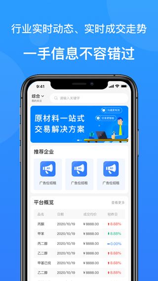云搬砖是专为化工原料交易所打造的平台,在这里你可以了解到各种化工产品的交易价格和物流信息。线上可以查看各大供应商的信息以及相关产品的供应情况,还能进行一键搜索产品名称或者品牌来查找货源哦!同时在app上也是有很多供求资源等你发布订单的情况了,欢迎有需要的朋友下载使用!