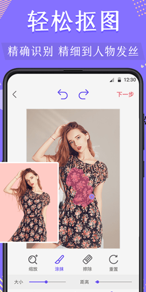 只需标记要扣除的部分,就能自动扣掉抠出的图片中的主体部分,非常方便快捷。