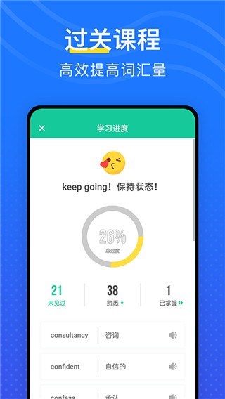 我爱背单词app是为学生提供学习英语的一款手机软件,在这里拥有丰富的英语课程内容供用户进行选择使用哦,并且还有超多趣味闯关功能等你来体验哦,需要的可以下载我爱背单词app操作使用!