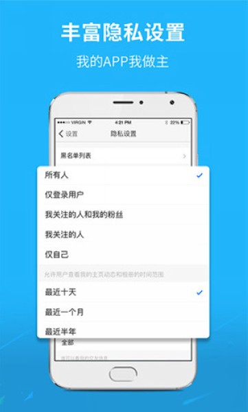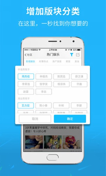 根据用户的兴趣爱好智能推送相关话题及文章供用户选择阅读;通过精准定位系统能准确搜索到感兴趣的用户加入或订阅自己喜爱的文章进行管理观看!