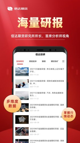 信达期货极速交易是信佳交易所的官方手机客户端,软件提供实时行情、在线交易和投资理财等服务功能。信达证券极速开户为信思期货极速用户带来便捷的投资体验。该软件不仅支持多种操作系统使用,还支持多种金融产品的购买与卖出管理以及资金安全保护等等的功能;同时信达证券极速app中还有很多关于期货方面的资讯动态可以查看了解!