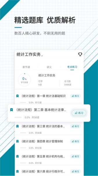 中高级统计师准题库全面收录近年来中级统计师资格证考试历代真题,模拟题,每日一练,考前冲刺密卷,实战考试检测学习成果,完美呈现学习效果,实时生成学习报告
