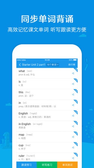 真人发音评测及逐句跟读打分,帮助学生攻克听说难题;