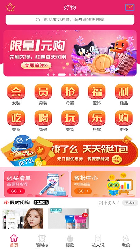 2、品类齐全:女装男装、母婴玩具、美妆护肤、鞋包配饰、美食零元购、电器数码等。