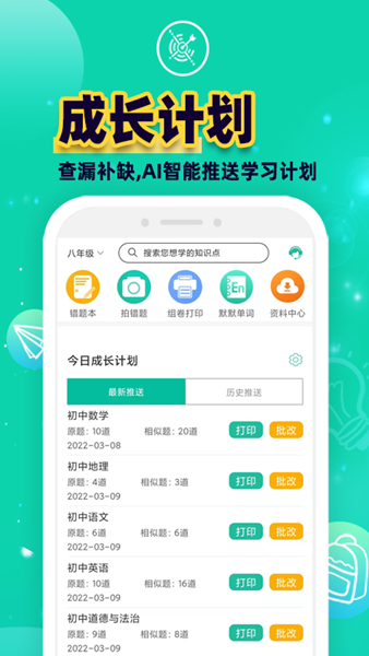 1、【查漏补缺】根据孩子的学习情况推荐个性化优质试题,提高孩子学习效率。