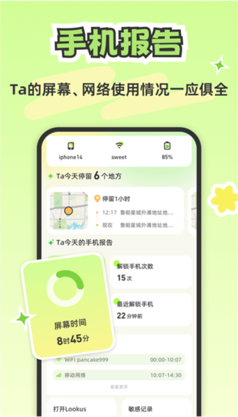 lookus是为情侣设计的趣味位置共享软件是一款专门为广大情侣设计的虚拟定位app,用户可以直接在手机上面查看自己的另一半的实时位置、位置信息以及历史轨迹等等。
