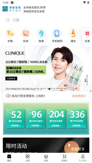 6、手机选购:不用出门就可以获取离岛离岸的免税优惠券。APP内设有免运费频道,您只需动动手指就能获得折扣。