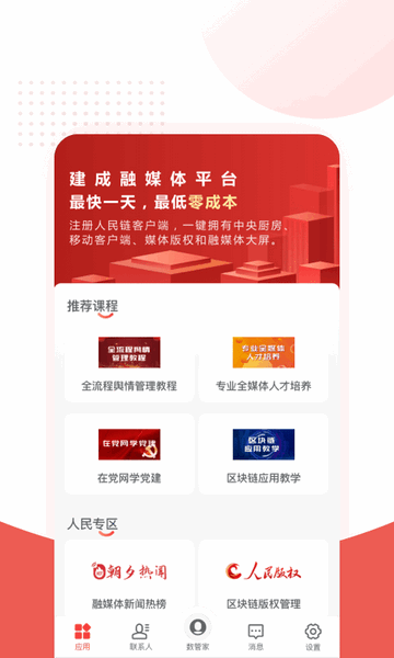 3、“人民链”APP是人民日报社推出的一款面向社会开放的应用程序,具有公信力、影响力和公用性,是一个集新闻采编、宣传推广、公共服务于一体的综合数字平台。