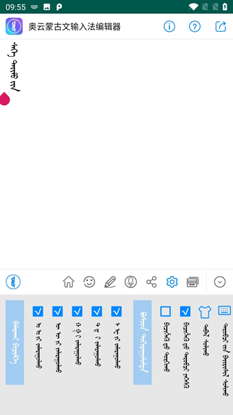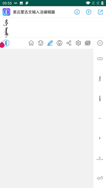 奥云蒙古文所打造的输入法一款专业的蒙古文字手写工具,支持手动、英文混合等多种输入模式。可以使用该软件进行蒙语拼音和笔画转换功能来完成蒙古语言的输入操作!需要的用户快来下载吧。