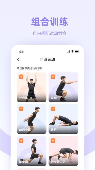 1.【智能训练】根据用户的身体数据量身定制适合国人体质的训练计划,还有各种难度等级的训练供您选择;