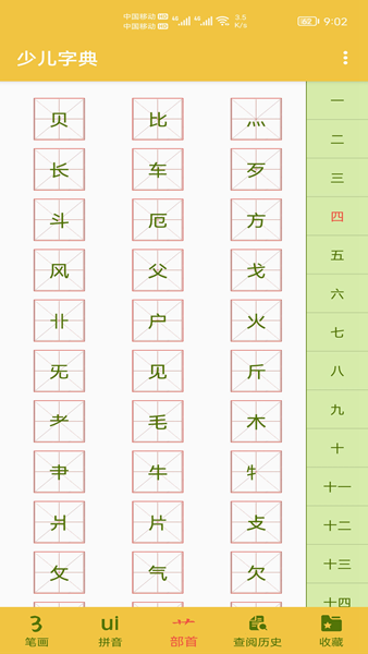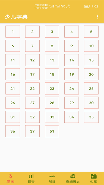 6、“笔划”界面也增加了笔画数的功能,让你在看中了汉字时记住笔画;
