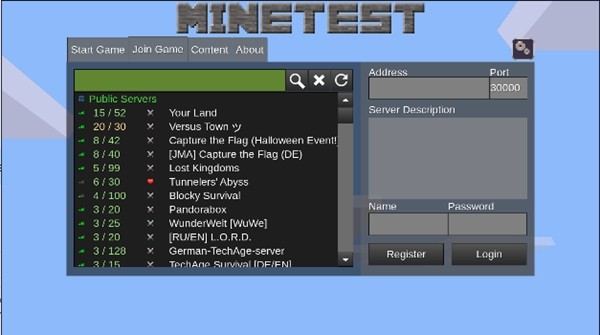 Minetest手机版简单实用的开源沙盒游戏是一款十分受欢迎的开源工具,软件功能十分强大,用户通过这款MeTest可以快速完成开源文件分享操作,并且还拥有各种实用小工具等你体验,对游戏感兴趣的话不妨点击下载试一试!