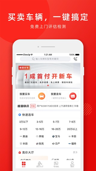 “唯有一家”是中国最大的二手车市场。中国第一家致力于帮助广大消费者实现“卖好货、卖好车”,同时通过线上线下渠道与第三方物流合作,实现“一站式”交易方式。通过车唯拍app可快速完成个人、机构或企业各类车辆运输业务需求对接和管理工作。通过车唯拍app你可以将车辆放入相应的竞价区间中,并参与竞拍成功率高的竞拍活动。