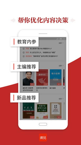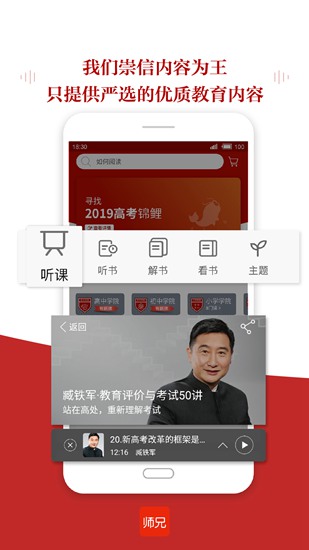 师兄APP是专门为用户提供优质教育的一款线上学习平台,该软件拥有海量优质课程、精品直播课资源和丰富的名校教师资料库等多种实用功能。在软件内你可以找到各种不同类型的学习视频内容进行在线观看观看了解自己感兴趣的内容知识哦!