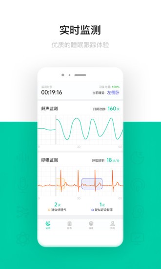 呼噜圈呼吸监测为款智能呼吸健康管理设备app是一款非常受欢迎的睡眠检测软件,呼鼾圈呼吸监测为款智能呼吸健康管理设备app内用户可以在线使用,实时监控呼吸频率等数据信息!