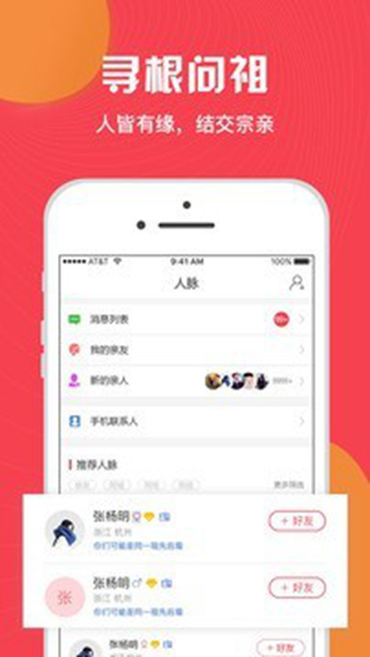 族乐享:家族乐享、家族树、祖辈集结;家族圈:族志同道合;相遇:缘分牵线、婚恋交友、约会交往、心灵驿站,一起玩耍,共同成长,结识更多新的朋友。