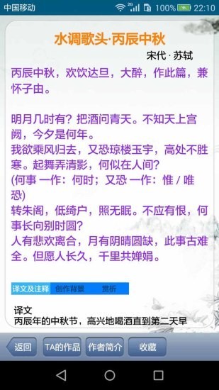 中华古诗词app是一款古文学习软件,中华古典文学作品赏析和阅读练习可以帮助用户在诗词上进行背诵以及朗读等服务功能。该软件收录了大量古代著名作家的经典作品资源,包括《唐宋元传》、《楚辞》、王羲之及其他名家名作,并配有详细的注解和译析解释,让您对诗词更了解。