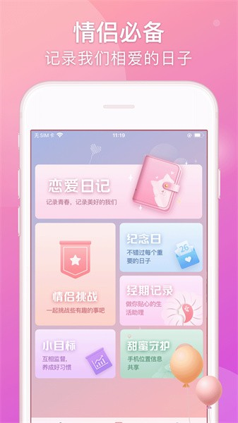 -恋爱清单:记录下每一天的甜蜜时光、生日纪念日、倒数日、重要日子。