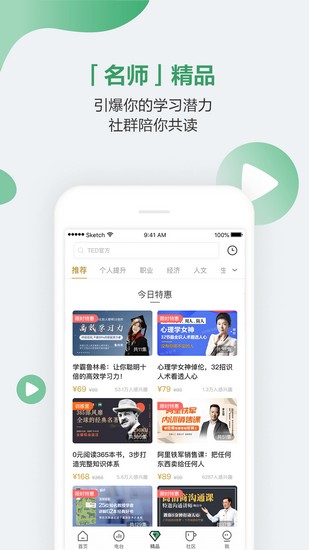 目前国内最大的移动学习平台已上线100余个,其中拥有超过1000本独家授权图书和数万集音频,覆盖英语口语、数学思维等多个领域。同时,它还将陆续推出海外最新发布的大学课程,以及一系列独具特色的专题栏目。