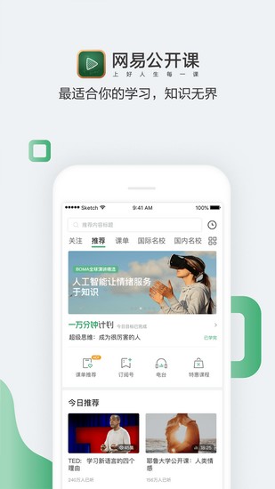 网易公开课是国内首家在线学习平台。在这里,网易课程覆盖面非常广。涵盖了国内外的优质课程,不管你是想了解国外好学还是需要名师名校的名门课程,这里都能满足你的需求。并且在网易公开课中还有许多精品公开课可以观看哦!