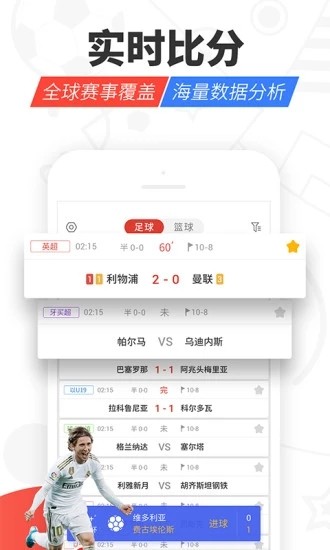 足球篮球比分即时更新,覆盖英超联赛/欧冠杯/西甲乙等多项足球篮球赛事;