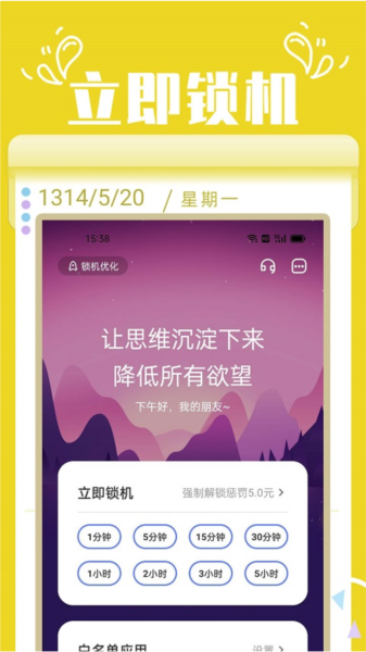 -定时锁机:设置一个锁机时间后,锁住屏幕,防止他人使用手机。